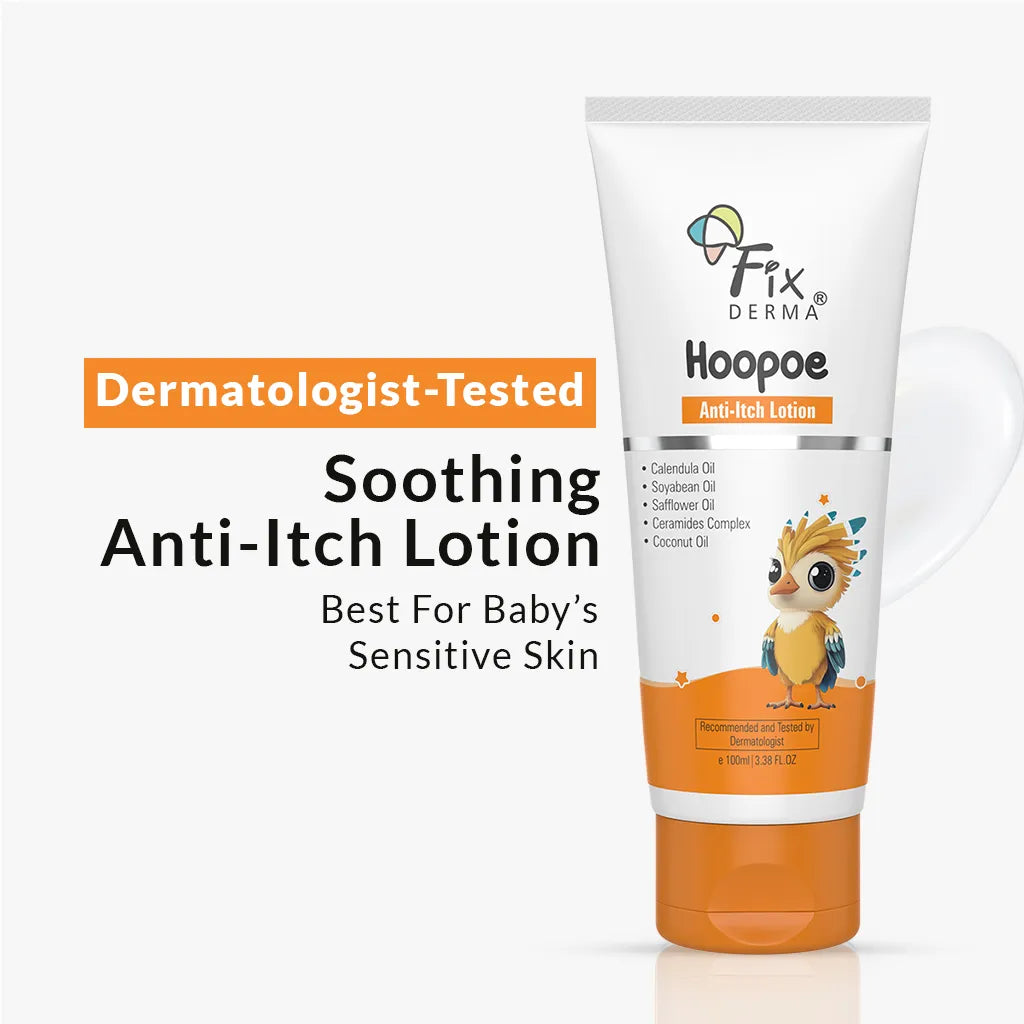 The Hoopoe Anti-Itch Lotion is formulated with clinically approved ingredients to soothe and protect your baby’s delicate skin. Infused with soybean oil for intense moisturization, safflower oil to calm itching and redness, and ceramides to strengthen the skin’s natural barrier, it effectively prevents dryness and irritation. This lotion helps reduce recurring rashes, leaving your baby’s skin soft, supple, and healthy; just as they deserve.
