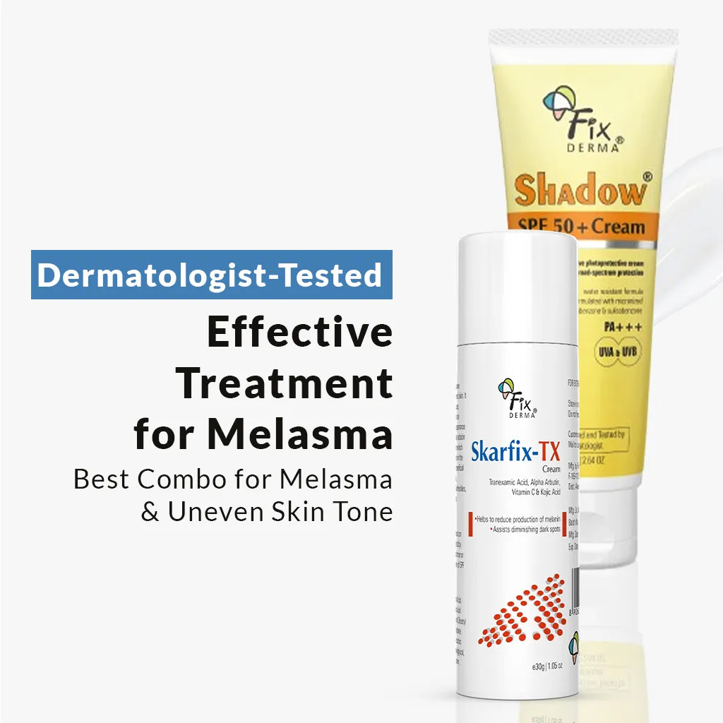 Skarfix-TX Targets multiple pathways of pigmentation, Non-comedogenic, Steroid free, Hydroquinone free, Effectively diminishes melasma, Reduces dark spots & blemishes, Exhibits a synergistic effect, Suitable for long term use.
