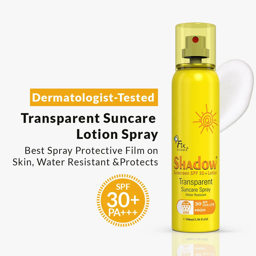 Shadow SPF 30+ Lotion Transparent Suncare Spray is a scientifically designed formulation which not only gives a desired feel to the skin but also protects it from the harsh UV rays. The combination of most acclaimed sun protectors with a skin friendly base makes it a wonderful product. The transparency of the product ensures its cosmetical acceptance.