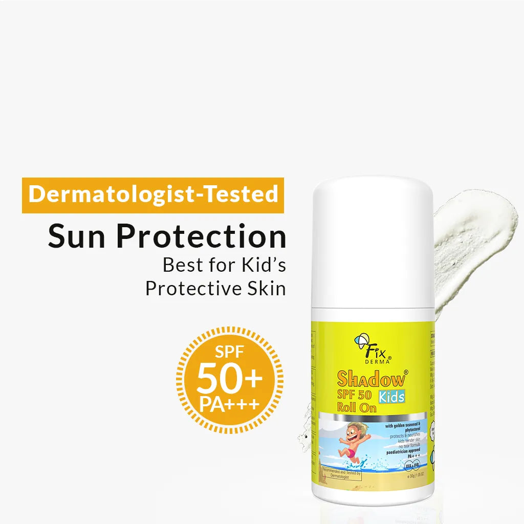Kids' skin is more sensitive and delicate than adult skin, which is why sunscreen designed for children is formulated differently. Fixderma Sunscreen Shadow SPF 50 Kids Roll On is an essential product for protecting children's delicate skin from harmful UV rays. It is a broad-spectrum sunscreen with an SPF of 50.
